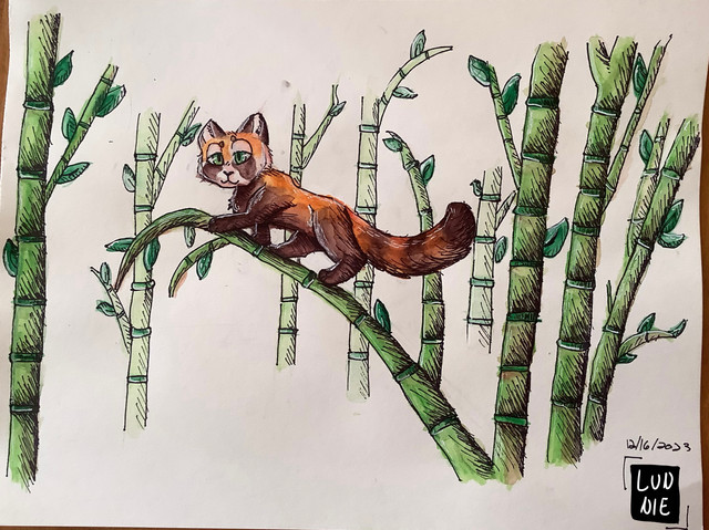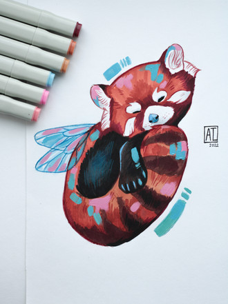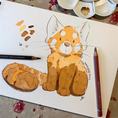 Angular red panda this time with some added colors with colored pencils-Support me on Patreon-