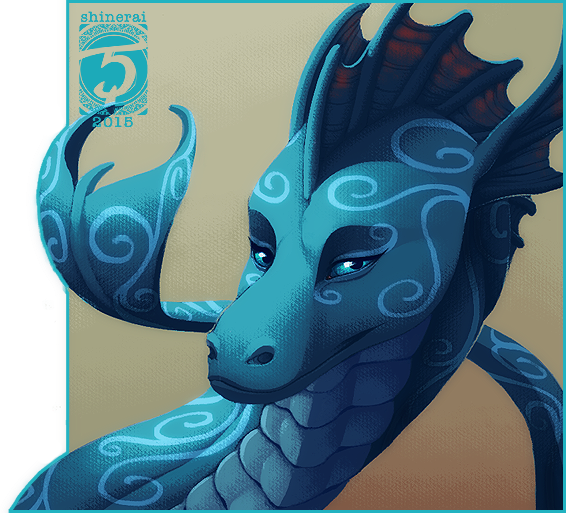 Thank you for the compliments! Yes I tried to get a whale-like texture for the skin because he has smooth skin and is semi-water dwelling. And thanks about the pattern! I've been making a custom pattern for each of my reference sheets to give them an individualistic flare