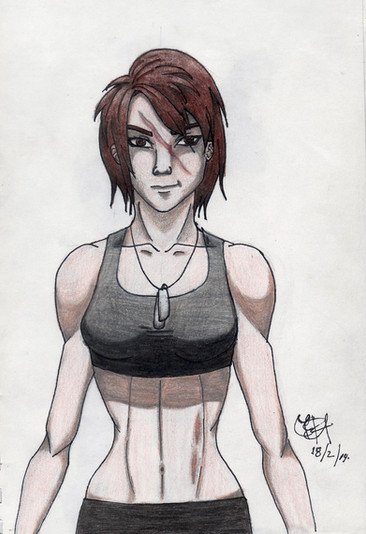 Old character in a new light! Design. Whatever. Anyway. Ling, my mechanic from a scifi book me and Lauren were going to write... but we're both easily distracted. By shineys. ... ... Uh. RIGHT. So, anyway, I changed her design slight to be like a lot less COLOUR!!! y'know? her vest used to be yellow, pants black(and tight) and her hair BRIGHT purple. I prefer this.Related content