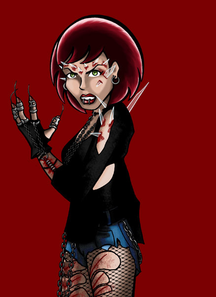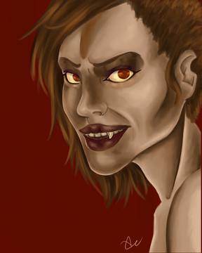 Very cool. That's actually exactly the sort of design I like for vampires (teeth, ears, eyes). And yeah, her teeth do look pretty great.