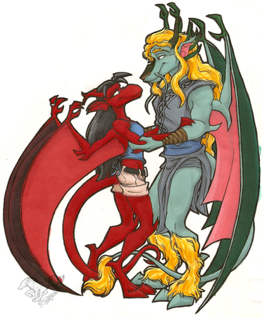 Don't think I've seen a gargoyle face like the male's before. Always nice to see a new design. Well, maybe not so new anymore, but this holds up really well for being a decade old. Your newer stuff has definitely improved, but there are other artists who's older stuff looks like crayon scribbles compared to their current work, where this is very close. (meanwhile, everything I've ever drawn up to today still looks like crayon scribbles)