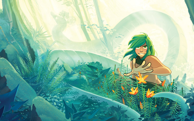 Awww, she's so adorable! I really like the way you handled her arms for some reason. I love her big shiny eyes and the rimlighting on her arms, and the soft painting on the leaf (?) is so lovely (I also really like the colors on the leaf as well). The pout is super cute, too. <3