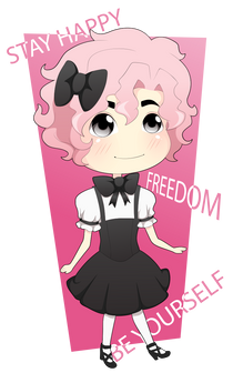 I really like this piece, it's super cute, and a fun concept, the lines are really clean, the outfit is WAY cute, and the colors are a fun exploration of pink. I don't think it's at all weird. Β I think that people thinking it's weird, is weird - what could BE more natural than humans being curious about how it feels to dress as the other gender? Β In our culture we honor creativity, genius, intellect - but these things are built on curiosity - so, why aren't we allowed to be curious about how it feels to be the other gender without being made to feel weird about it? Β In particular, why aren't *males* allowed to be curious and to experiment with how it looks & feels to be female? Β Curiosity is "normal," being told that your curiosity is "weird" - that's abnormal, it's the root of so much evil in our society. Β I think it's great that you're exploring that idea in this piece, that it's normal to be curious. Β Thank you, coz that's a really important statement to make Β Β