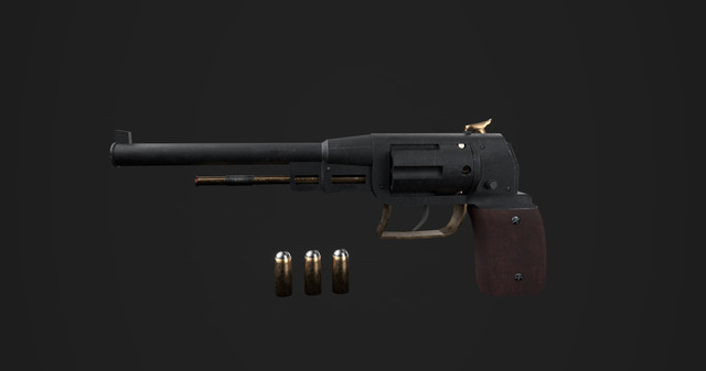 I cannot see the gun hole, from where the bullet exit, but it seems that it is aligned to the bottom part of the cylinder. The bullet to be shot is the one in the bottom part of the cylinder, right?