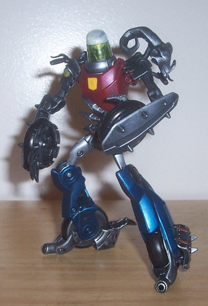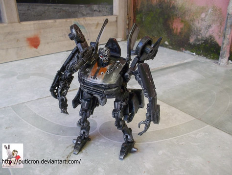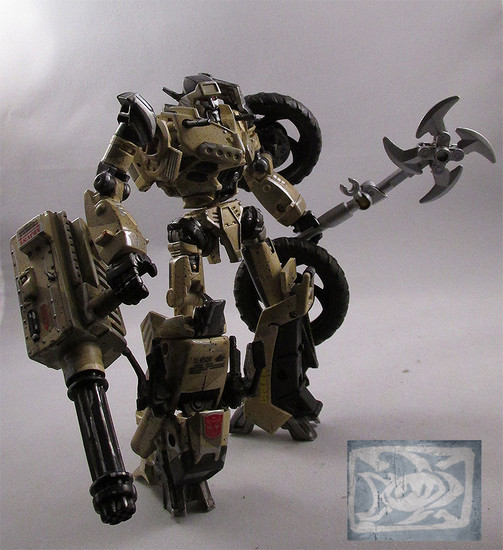 Heres the second mode of the Ghost Rider TF and its not a vehicle but another Bot! I decided that since the TFs Ghost Rider it needs to have a Johnny Blaze(atron) alternate mode as well. His handcame from sideburn with a Transmetal Cheetor Head that has been given a new facial sculpt. I had to give him Blazes shotgun as well.Related content