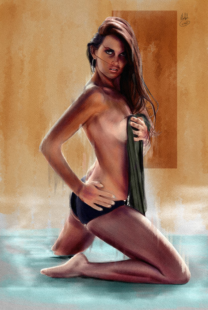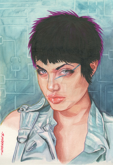 Based on a beautiful b/w photo of Angelina Jolie (the title of the artwork is also an homage to Angelina, one of her first movies was "Hackers"Water-based pencils on rough A3-sheet (300 g/mq).