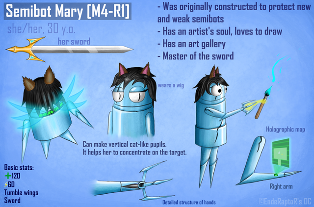 A bit of a reference sheet for my Shy Gal OC. This was fun to make, especially her weapons and items. Below is the rest of her information.- -