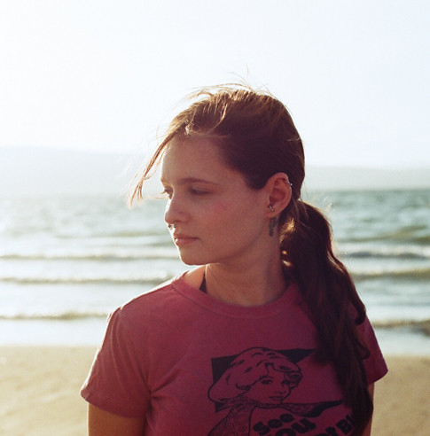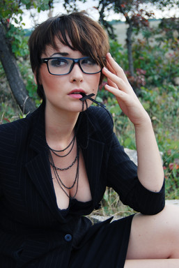 this is a totally erotic photo, even though the model is fully clothed. the position of the hands in front of her genital area, the tension in her hands, while holding the camera's lens, combined with her facial expression is making this photo stand out.