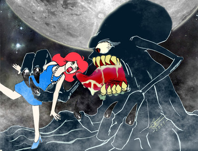 #60s #alien #blackandwhite #dailylife #dark #demon #eating #fingers #girl #jaws #monster #planet #predator #redhair #space #strange #subnormal #teeths #unlucky #weird #monstersandgirls