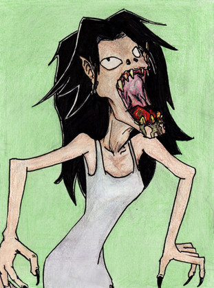 Woah that is creepy! I don't really want to give ways to improve because I could never be this good, but what you could do is use lots of different colours in, for instance by adding different shades of green or even yellow to the hair. But this is amazing anyway xx
