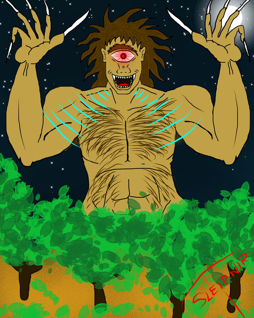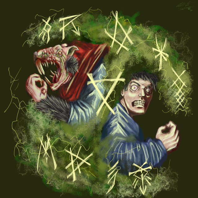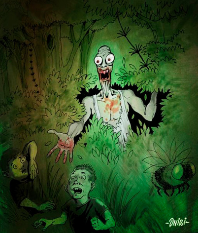 It's really too creepy for me Anyway I thought of how you could improve on this. It's taken me quite some time, it's so good already... The only thing that came to my mind was to add some highlights on the monster because the light comes from behind. You know, on the very outlines of his hair and body. Might look good in a somewhat light-greenish tone or a slightly brighter tone of the background-colour. And on the body you could use three shades of brown instead of two, the third much darker, so that the bottom of the picture gets darker and the boy's and El Coco's faces get more attention. Because their faces are perfect. The teeth especially and the boy's expression! Another thought was to put the boy in a blueish shirt, it's a beautiful yellow but as it is such a different color from the rest, the viewer focuses on the shirt instead of the boy's face. But blue is only an idea, maybe another colour would be fine, too, for example the colour of the shadow on the shirt could be perfect as the base colour and then a slightly darker one for the shadows on the shirt? ... But don't worry, these are only minor suggestions. I find this impressive. This really could be done for a book cover!