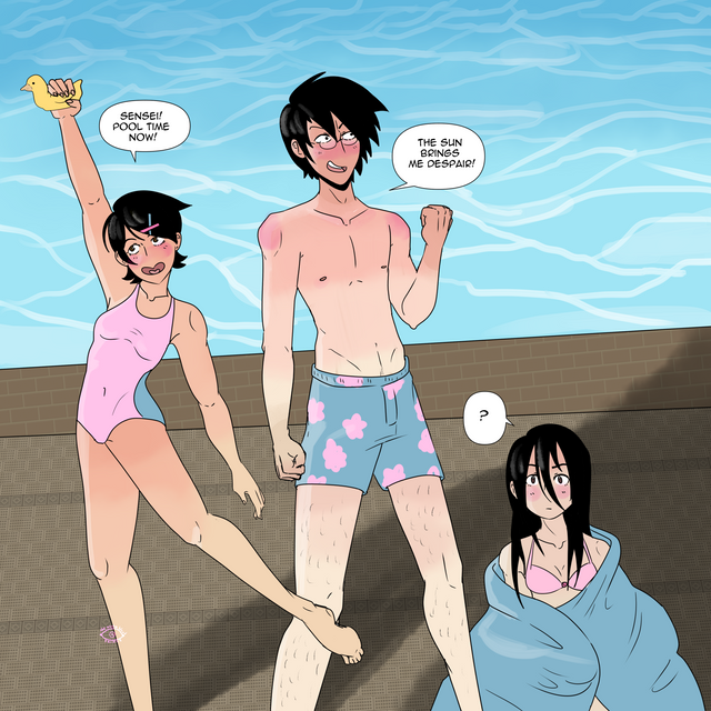 I don't know if I specified but part two would have the girls in their swimwear too oof-