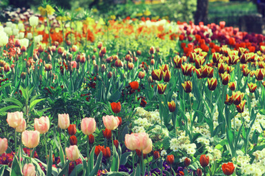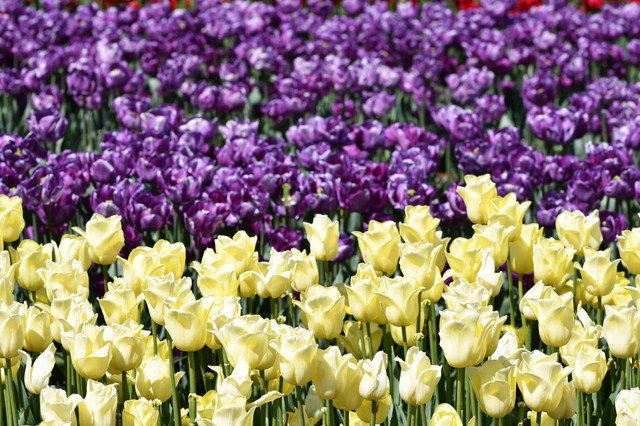 #flowers #green #nature #plants #purple #tulips #white #yellow