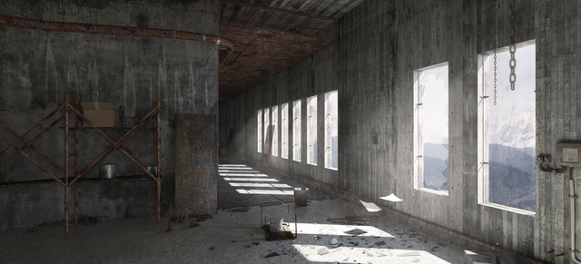 Whether it be the pores of the stone wall, the cables stretching out across the wall, or the glare of the sun on the window, the details really bring this picture to life. It's hard to tell if this place is a home or a prison between the paned window and the almost hidden barred window. The glimpse of the sunny day kind of gives us a glimmer of hope onto the otherwise dreary weatherbeaten scene. I'd like to point out that this picture is still two dimensional.. but that's a natural limitation that only sculpture or architecture, etc. could overcome. I still find challenge in trying to mimic reality by creating a fake depth. It's the basics, but it can take forever to master.