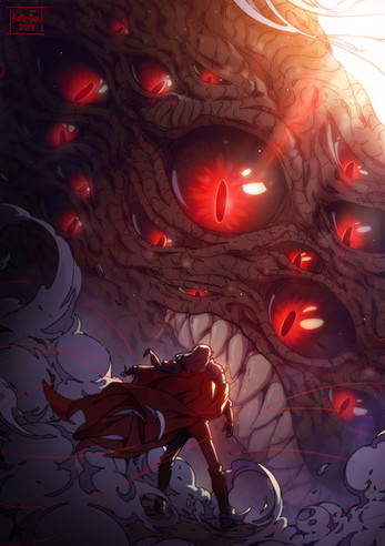 Wow, that is really amazing, the color and line work are wonderful, you really get a feeling of menace and evil from the dragon with the harsh jagged lines coming off the smooth flow of its body, and the beautiful design of the princess, the look of her smooth gentle looking form mixed with the feel of her acceptance. Unlike so many other dragon slaying pieces the hero here is resigned and humble, she is accepting her possible death and has a very calm look about her mixed with the light behind her just makes for a wonderful scene. I know I am looking way to far into this but its a beautiful piece and clearly demanded a lot of effort and time, so you deserve some praise that looks into the work and admires it for more than the stunning piece it is, but for the parts that make it, how each piece of this image you made contributes to a beautiful piece. How the use of color light and pose tell a story and speak volumes to the observer. thank you for taking the time to make this and sharing it. I hope the show goes well and your work gets all the attention it deserves.