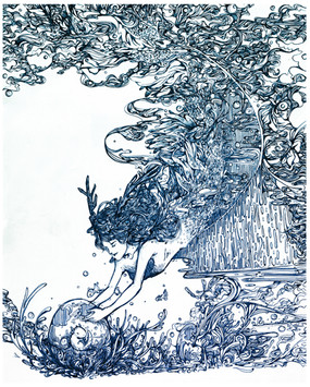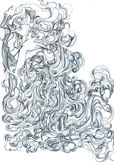 I agree! I think if there was a lot of detail in the arms and face and skin, it would be too much, because there is already a lot going on in the other regions of the composition. Beautifully done : ) I can't imagine how long all those tiny pen marks took!