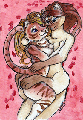 Valentines cuddle commission for chatin on FA.Created with watercolors.