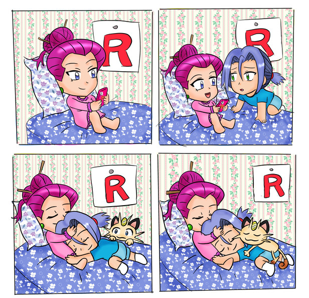 Jessie an' James. Dey were dere. Sayin': 'C'mon, Meowth. Let's go!'