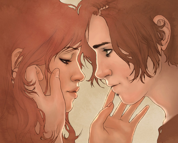 5. always remember that in a portrait like this, the feature of the face are completely defined by shadow and color, outlining them is only gonna make it look terribly fake>.<
