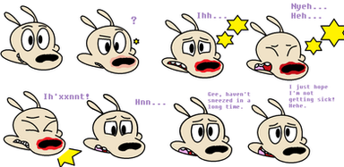 Sara: (plugs her ears and waits for Lumpy to sneeze)