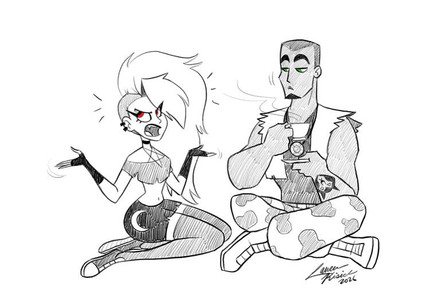 “She kinda HAS to run errands with me.” Beastboy said, putting his hands on his hips. “Or else, she’ll have to play the online tournament for ‘brawling monkey racers’ with me allllllllllll weekend long!” He nodded his head and Raven quickly went along with it.