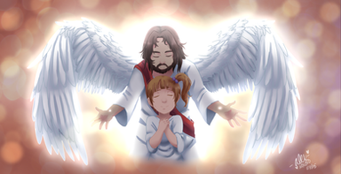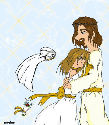 I don't really know. I was listening to a song called "Into the Light" by Matthew West and for some reason this image came in my mindIt's Jesus and a boy (i know he looks kinda feminine) and the boy looks like he has come out of a shower or a bath, and Jesus is drying his hair off with a towel.