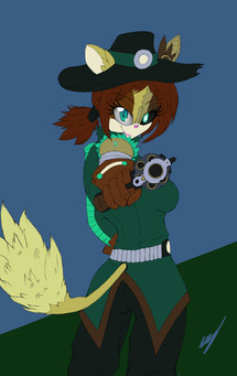 Here's some Ruby! Been a while since I uploaded some stuff of her. This was done by my awesome friend Zeiram of Ruby in the old west. He had shown me some designs of Sonic characters in a western theme and I thought they were great, which lead to this pic. I really like this idea for sure and I'm thinking about a few pic ideas involving her and some other old western Sonic characters. What do you all think?