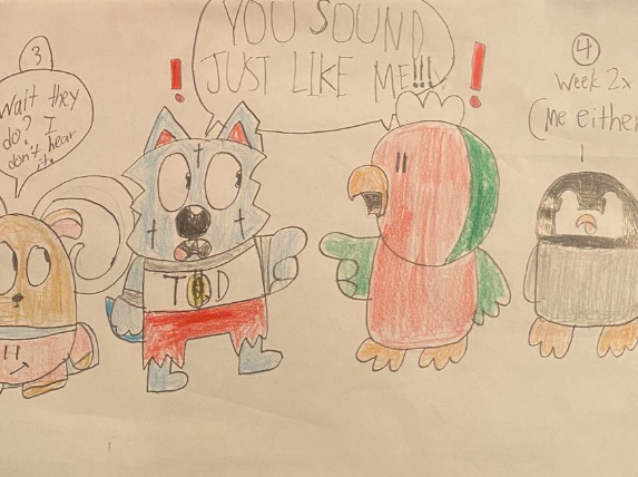 As Aero continued dancing about, he began hearing audible giggles from Zookie, Cinder, and Sparky.