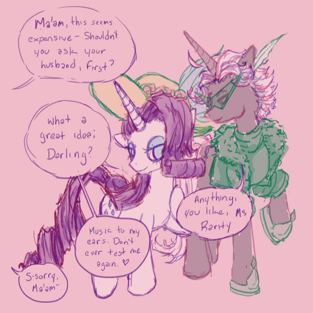 Thank you! But I can't take credit for Dash's dress design. When Jblaser made the request, I asked for a dress reference and they sent me this:Β i.pinimg.com/originals/e0/6a/2β¦ . However, I did design Rarity's maid outfit.