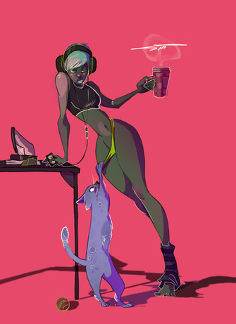 “Pull up to the bar, and enjoy a cold one!”From my space opera setting, Patrol Girl.