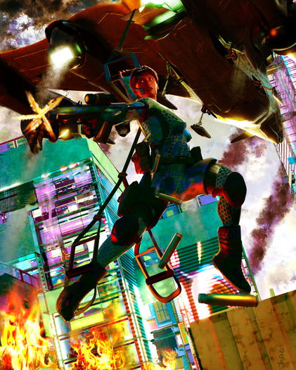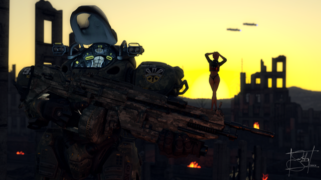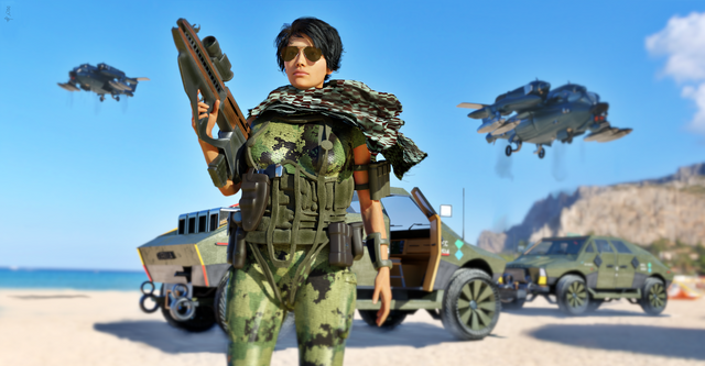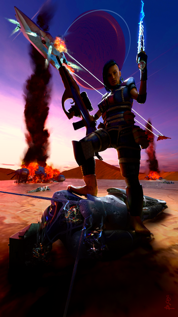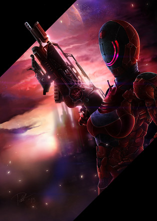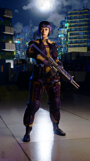 Yet another sci-fi supersoilder. Character made in makehuman and blender. Whole scene made in blender.Postwork in Gimp and Photoscape X.