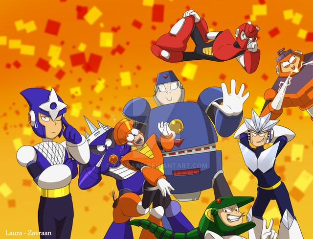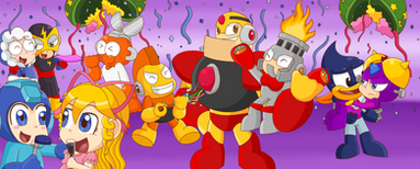 #2017 #capcom #confetti #crashman #fanart #happybirthday #megaman #robotmasters #rockman #snakeman #traditional #partaaaaay #birthdaygift