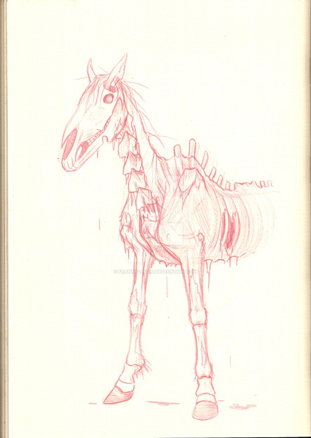 Very nice rendition of a thestral, if that's what you were going for, anyways. Looks nice and painful and rotting. Very lovely altogether. ^^