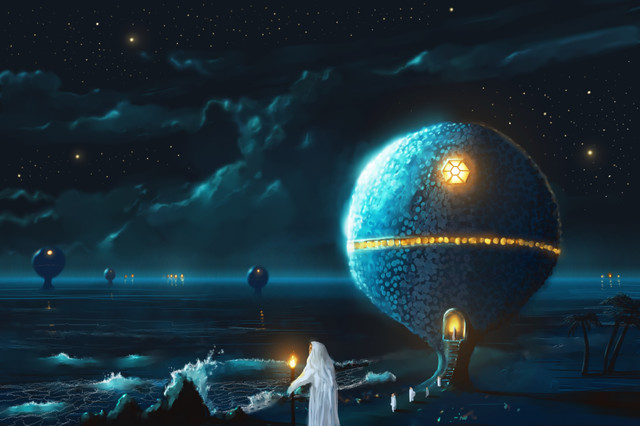 #alien #background #blue #epic #lights #meeting #sky #strange #worried #illustration #painting #phenomenon #surreal #surrealism #unknown #wallpaper #surrealfantasy