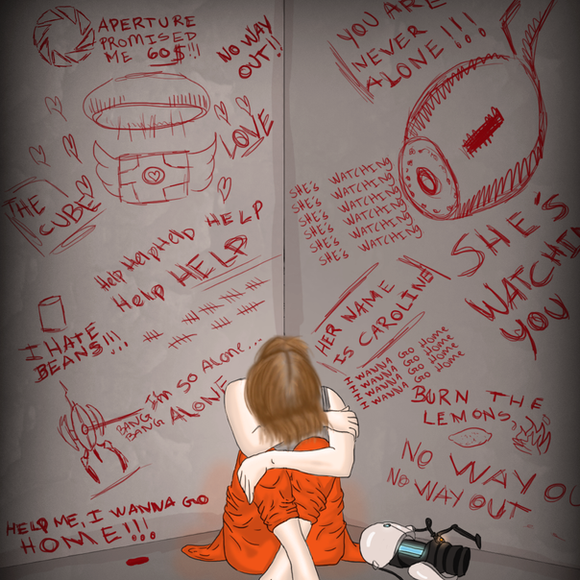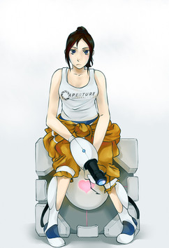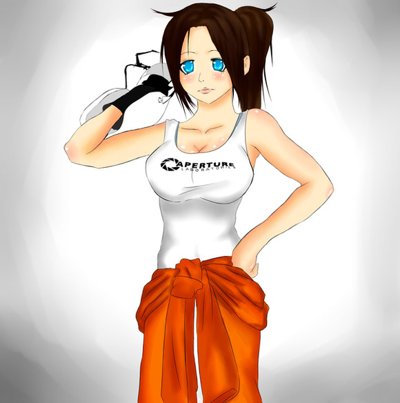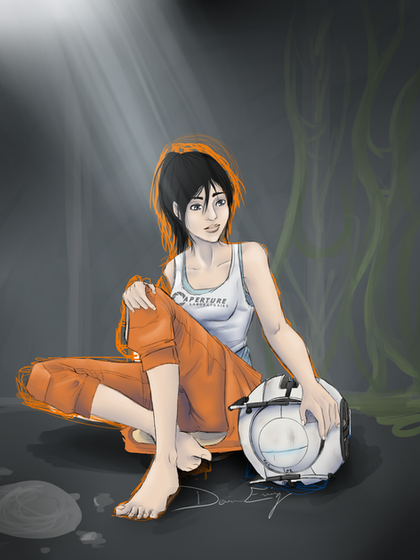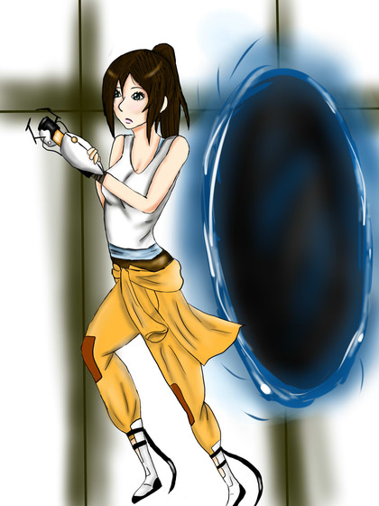 I am finally done with Chell!I was working on a drawing of her, and then... Stupid me, I shut down the picture without saving it first, in photoshop. I could have shot myself. But I kinda like this picture better, than the first one, so I guess it's okay.
