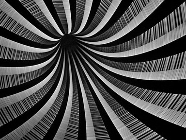 Sort of like an extreme closeup of a hard drive surface or something similar. The curve is suggested but caries the mind around the entire circle.