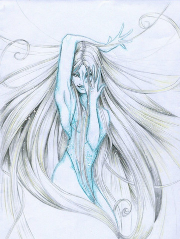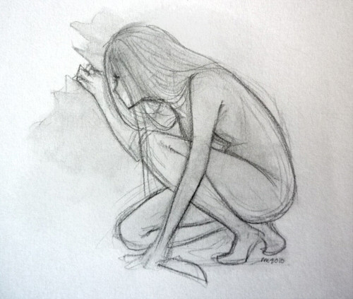 Beautiful pencils/inks, here. I love the tone shift from above to below, how she fills out that bottom space. And her hair in particular is so lovely!