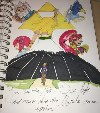 I have been working on this all day.Trying to improve my coloring skills and think I did pretty ok ^^' I haven't played this game for awhile,never finished it but my younger brother did.hes a pretty good gamer than me and he makes me look bad lol jkSketched it thendid lineart with a black sharpie pen then colored it with Crayola colored pencils
