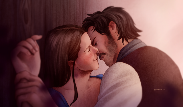 I referenced this from a screenshot I took - I just liked their expressions, the colours and mood too much xD I tried to match the colours as closely as possible, which turns out a little difficult when you're halfway done and "OY where does the pink in the lighting come from?!"