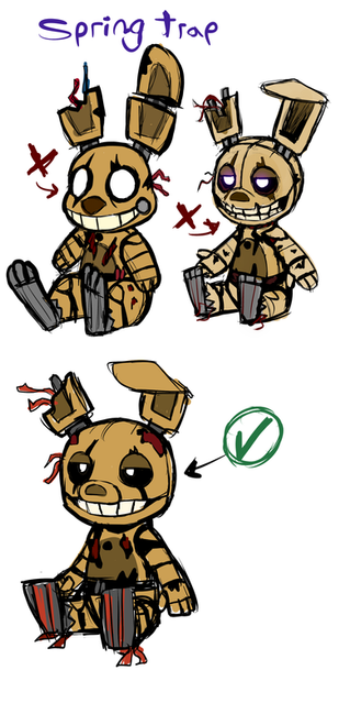 Of course, I own nothing but the art. Springtrap and most of the versions shown here belong to Scott Cawthon, with some side ownership of people like Illumix and SteelWool? However, a couple of the ones I drew were made by others, with those being DaveTrap from DSaF, Springtrap from the Springtrap and Deliah comics and "Springy" from an Into the Flesh AU. As one would expect, they were created by DirectDoggo, AbberantPaint/GraWolfQuinn (who, sadly, is no longer on this site,) and SummiBerryBear on Reddit respectively.