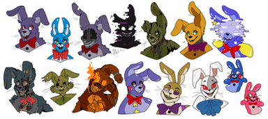 Okayy, so this may need some context.I was doing an Aggie.io with some friends of mine- just for the heck of it- and thought it might be fun if I tried to sketch out as many different versions of Springtrap as I could. However, I couldn't really finish it because of some connection issues. So, I thought: Hey, what if I tried to do that again? So here we are.
