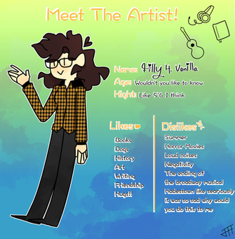 I've recently found a few of these "Meet The Artist" Things going on, and I thought I might as well hop on the meme train and do on myself. that and, Idk, it might teach you guys a few things about me you might've never even thought about. So; Here ya go.Related content
