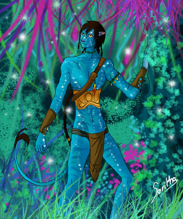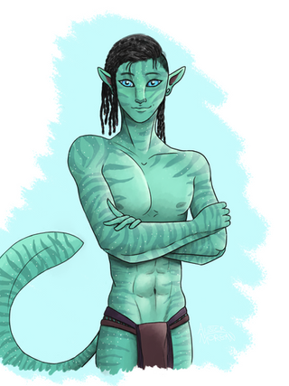 Yeah you all knew it was coming.So this is Keye'ri, my first Na'vi OC. He has an older brother that I haven't coloured yet. 8D; (Stripes. Stripes. Let me express my pain over the stripes.)