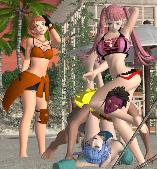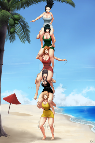 The human tower is now stable and Hange takes the opportunity to motivate the girls to stay that way. Sasha was beginning to enjoy having her face stuck to her superior's crotch and she was beginning to rock back and forth. Annie managed to get her head out from under Sasha's butt, but it was becoming painful to keep her balanced on her head. Also, Sasha accidentally put her foot in Mikasa's face and she recoiled slightly. But it had enough impact that she crushed again poor Historia's face with her butt.It was getting harder and harder for the young blonde to carry all these girls. She tried to loosen Mikasa's thighs that were squeezing her too hard, but Mikasa was afraid and she squeezed her thighs even harder against her head. Liquid was running down her face but Historia didn't know if it was the sweat on her forehead, or Mikasa who was wetting.