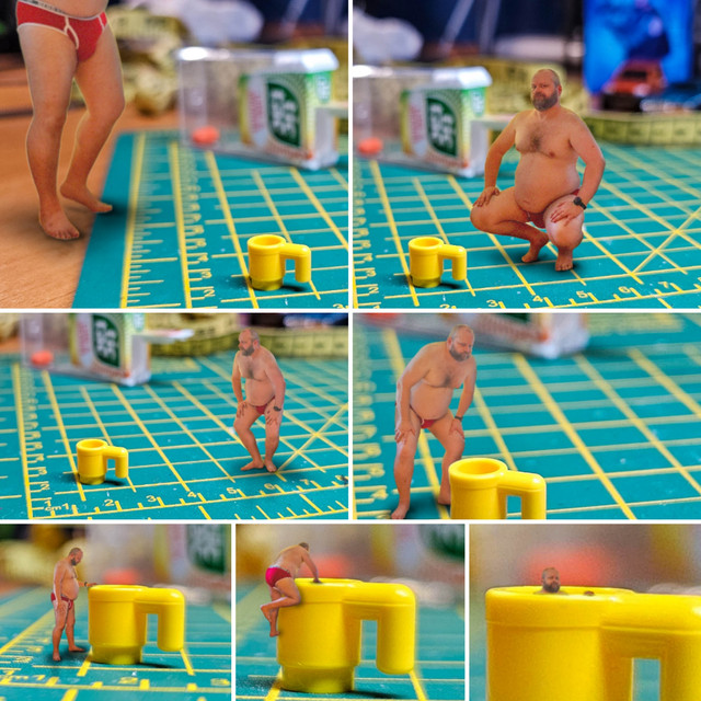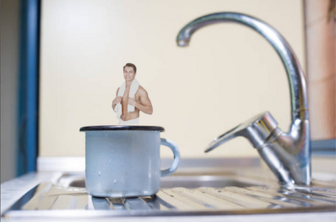 So did the tiny guy go for a morning swim in a teacup?? An embarrassing reminder of just how small he's been made!!