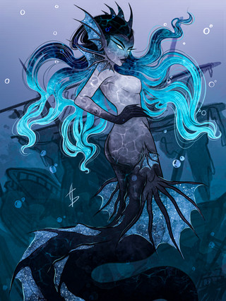 She’s lovely!! Quite deceiving with what lies beneath!! :0 Awesome job on her tentacles and webbed fingers!!