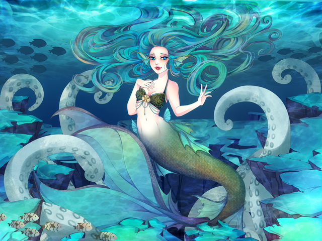 #blue #girl #octopus #sea #octopusgirl