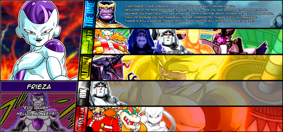 Good Alternatives: Pyron (Darkstalkers), The Condesce (Homestuck), Beast Wars Megatron (Transformers), Apex Lex Luthor (DC) (For Xeno Frieza), Mephiles (Sonic The Hedgehog), Ridley (Metroid)