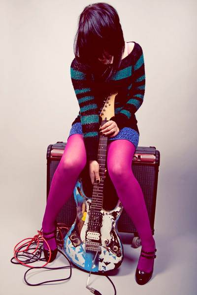 The lighting for this was particularly difficult, white walls and white bedding bounce the light off of everything, and all the other shots the white guitar area was blown out. However, I'm happy with this.Guitar is a Squier. (Squire?)