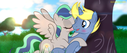 Flitter was just taking a quiet nap until Rumble came flying by and decided to give her company. ^^